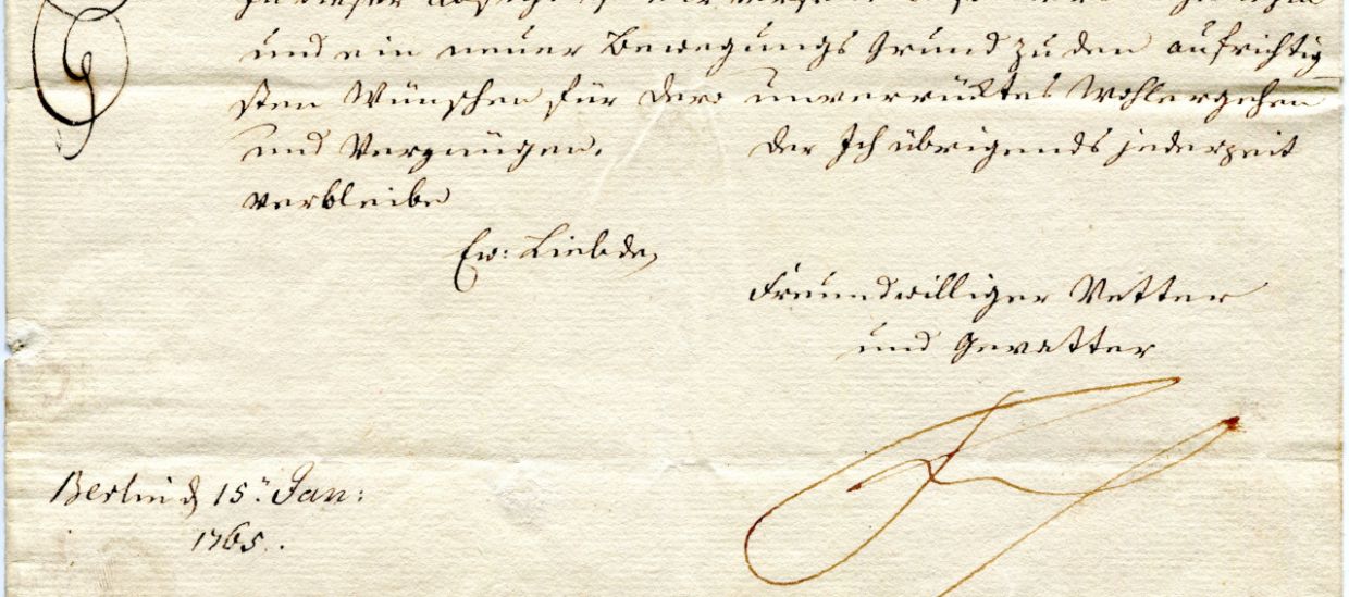 Berlin d 15 Jan: 1765.“